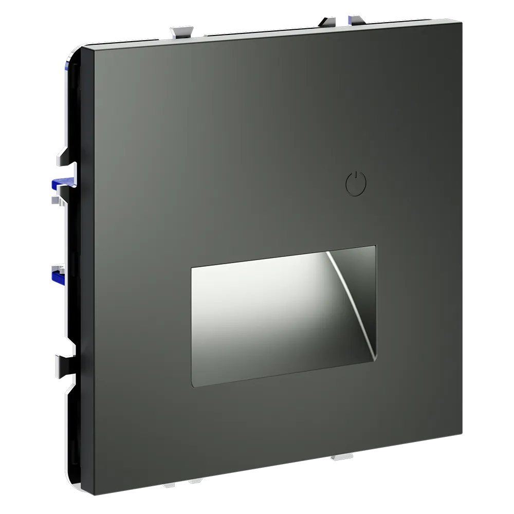 Подсветка устанавливается в стандартный подрозетник и совместима со всеми рамками серии S70 — пластиковыми и стеклянными, что позволяет интегрировать её в любую композицию на стене: рядом с выключателем, розеткой или терморегулятором.